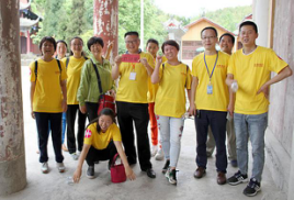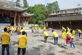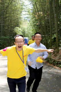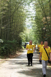 古鎮(zhèn)通關(guān)活動結(jié)束,拓展第二關(guān)---攀爬楠竹山,為增加趣味性,到達(dá)終點后還需返回到陽平觀中尋找神秘人,先行取得神秘人簽名者獲勝。隨著裁判一聲令下,3組隊員從起點出發(fā),沿盤山小徑一路向上,爭相向終點跑去。各隊組員友愛合作,互相鼓勁助威,最后多潘隊全隊率先達(dá)到終點,幾經(jīng)周折找到隱藏在陽平觀內(nèi)的神秘人,獲得本次活動的第一名。