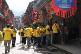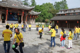 出發(fā)前全員集結(jié)抽簽分為紅金隊、多潘隊、米格隊三組,講解游戲規(guī)則,推選組長。各小組在組長的帶領(lǐng)下參加了在古鎮(zhèn)的趣味比賽環(huán)節(jié)。完成以下三個游戲即可取得第一“通關(guān)卡”:飛奔的鴨子、古鎮(zhèn)買買買、我知,你知不知?三組隊員完成游戲“飛奔的鴨子”后,即爭先恐后穿梭于古鎮(zhèn)各處完成錦囊任務(wù),古鎮(zhèn)因“維奧人”的到來充滿了歡聲笑語。